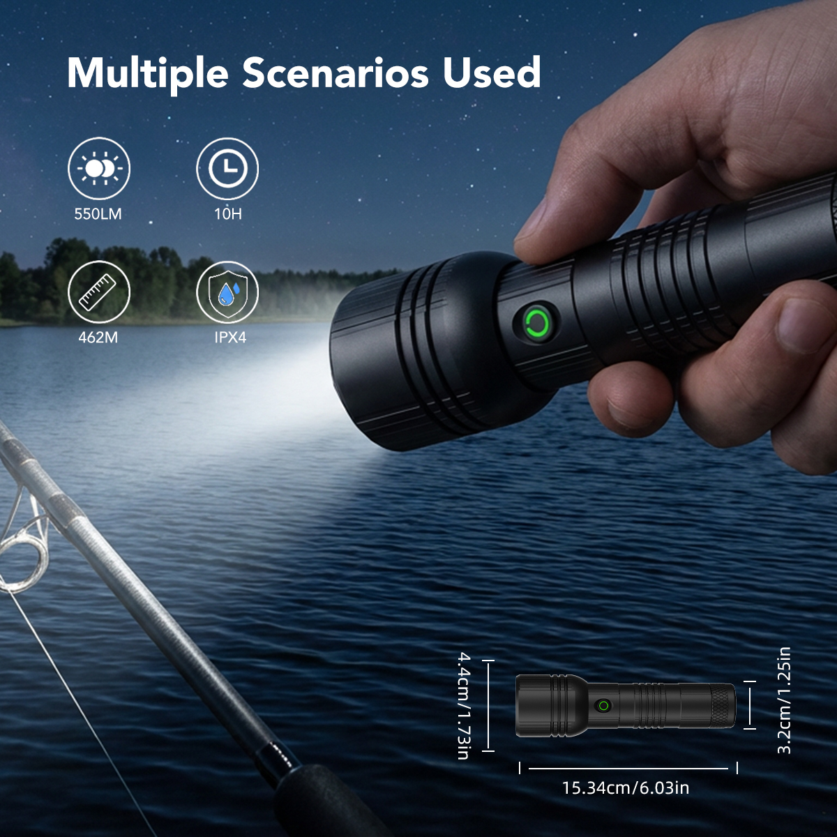 Gebouwd van premium 6063 aluminiumlegering met een zwarte geanodiseerde afwerking, is hij IPX4-waterdicht en gebouwd om een impact van 1 meter te weerstaan.